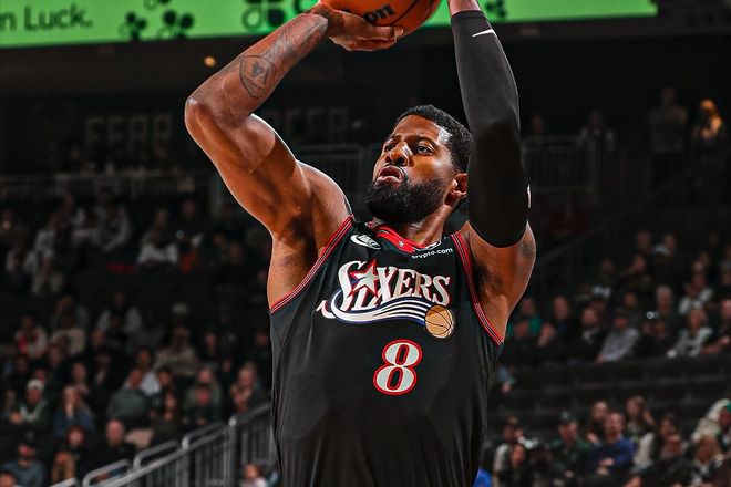 而除了恩比德,今天的乔治也迎来爆发。今天的他,可以用丝滑来形容!乔治今天展现出来的突破能力、运球能力,确实是76人一直以来期待的。可以这么说,上赛季乔治若是能够展现出这样的实力,可能上个休赛期他们也得不到VJ·埃奇库姆了。全场乔治17投8中,三分7投4中得到了23分6篮板5助攻1抢断,攻防两端的表现都很出色。而23分,也是乔治的个人赛季得分新高。所以76人这一对加起来超过1亿美元的组合,今天合计得到了62分15篮板8助攻,终于是对得起两人的合同了?而且,这是两人合作以来,同时有出色发挥的一场比赛。